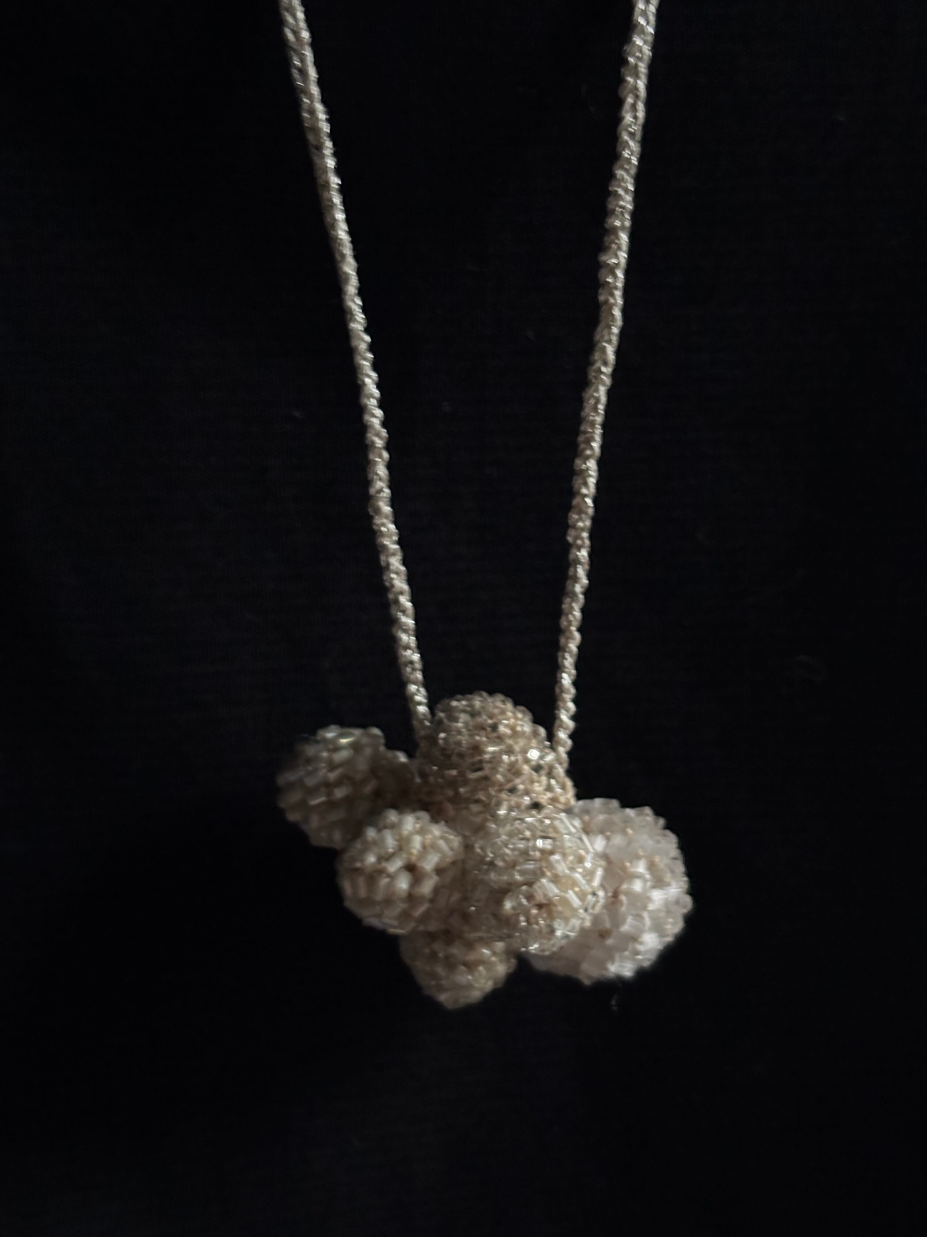 レース編みとして最大限にビーズの可愛さを堪能できるネックレスが出来上がりました。