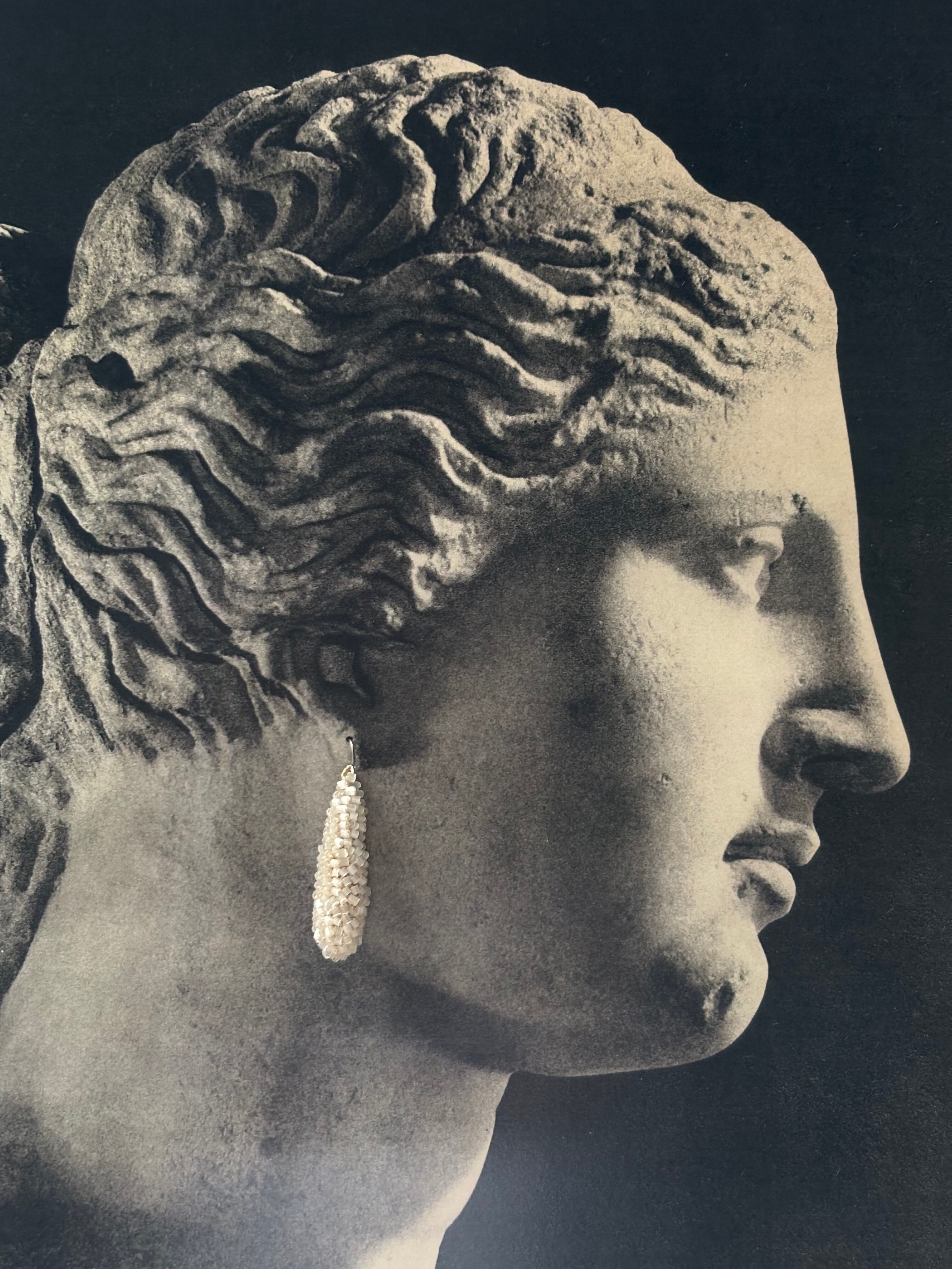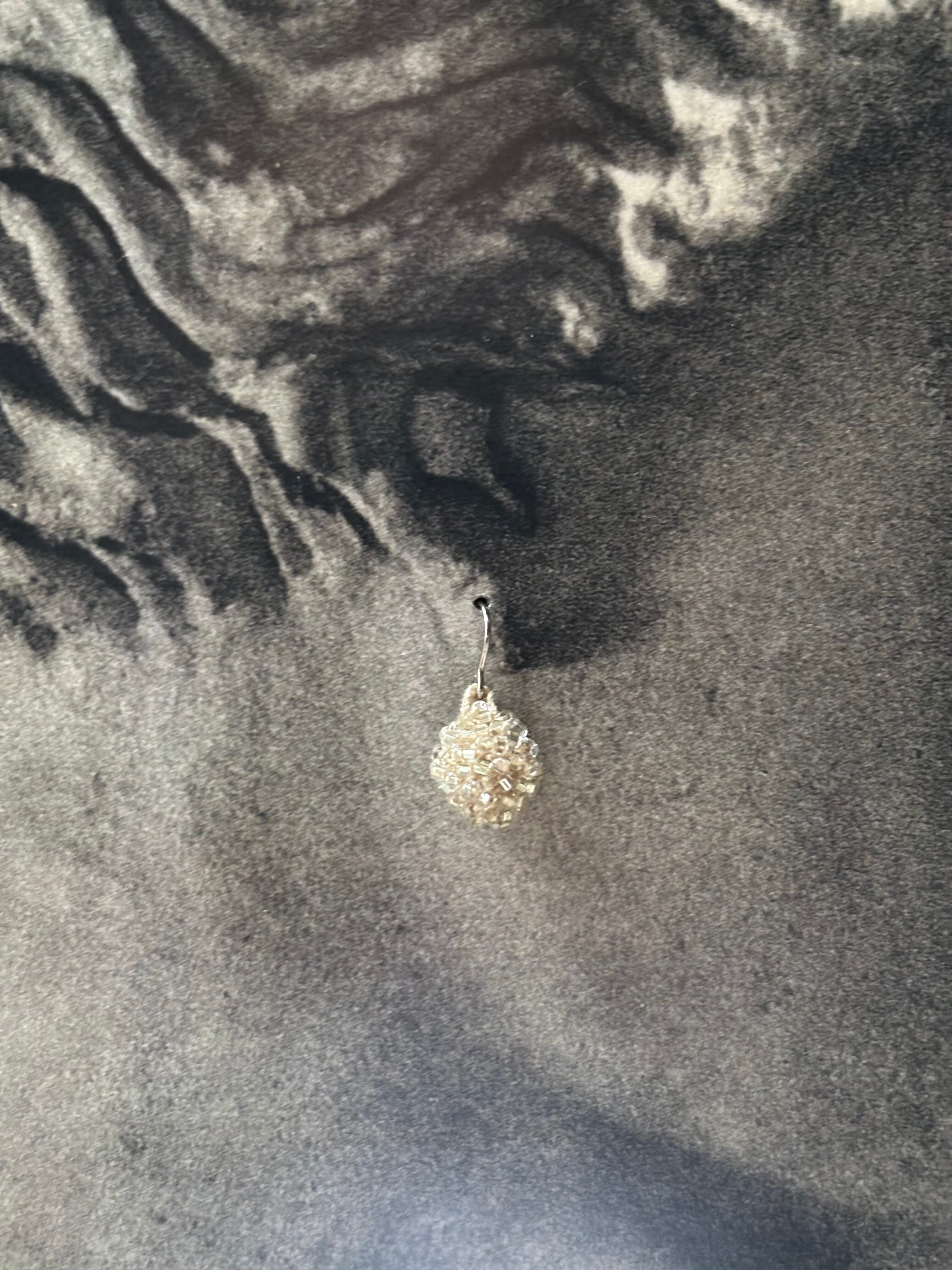 surgical stainless steel earrings that don't interfere with the design. The earring hardware is made of surgical stainless steel for the parts that touch the skin, and stainless steel for the parts that don't. The seventh photo shows the earring hardware.